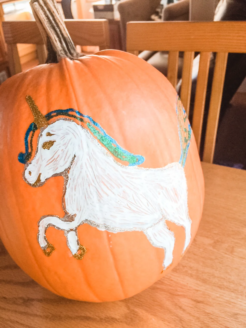 And finally, the most important news of all, I have decorated my favorite pumpkin of all time. Sparkly unicorn!!