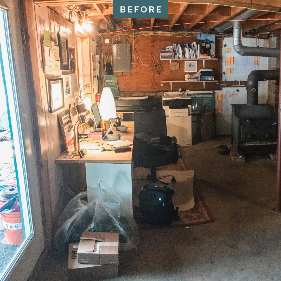 For this project, we moved the furnace and wood stove and built a finished space into the corner of the daylight side of our basement.