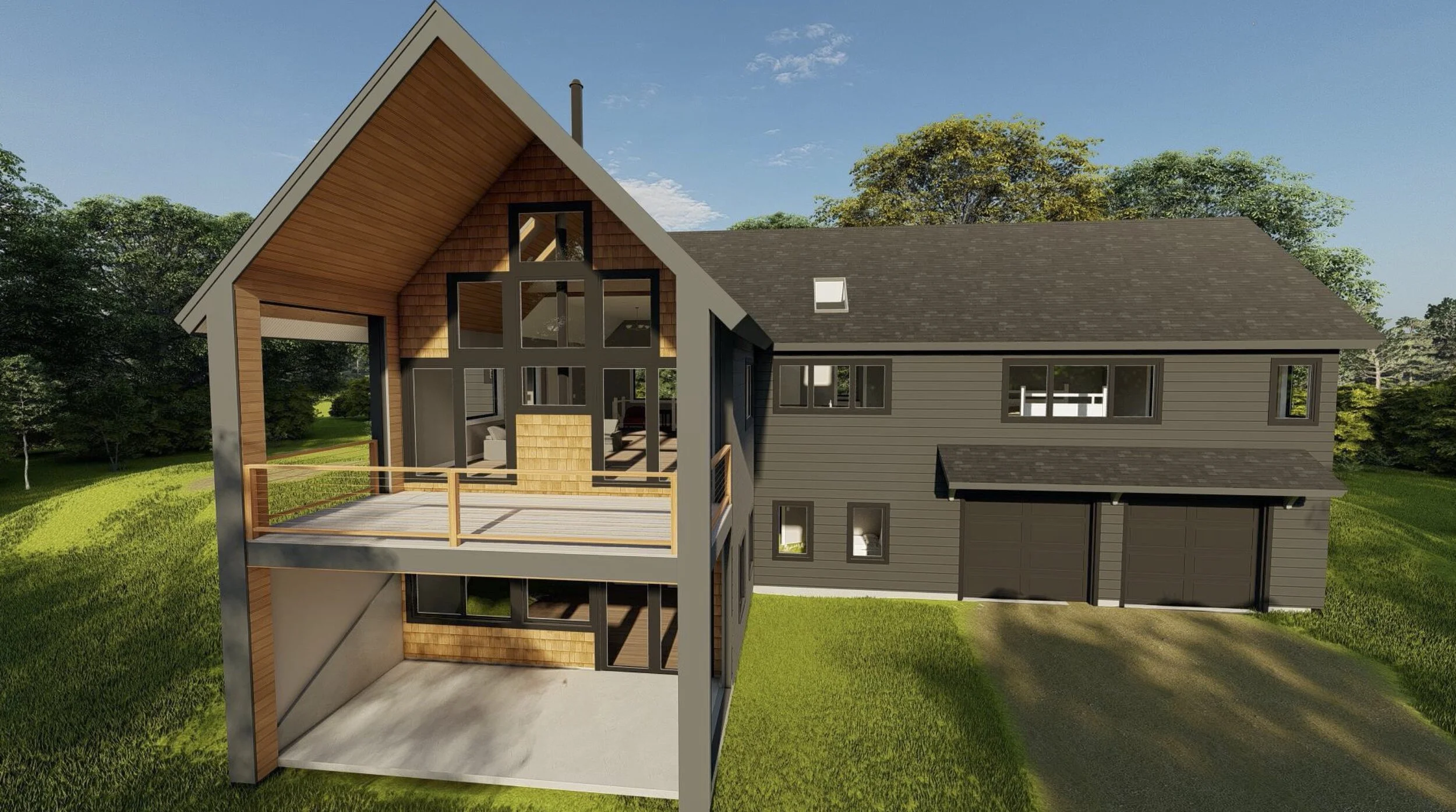 🏠 My recent design for a ground-up house. Modern alpine style. It's a 5 bedroom, 3.5 bathroom house. 2800 SF. The simple L-shaped footprint is designed to hold back a steep slope and take advantage of incredible views. 🏔 There's a 2-car garage included on the basement level. 🤩 I'm so excited to see this take shape in real life.